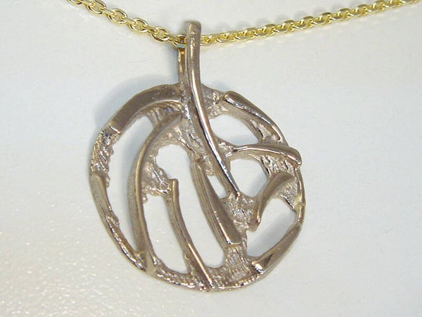 14 krt. Witgouden handgemaakte hanger in een speelse ronde vorm.